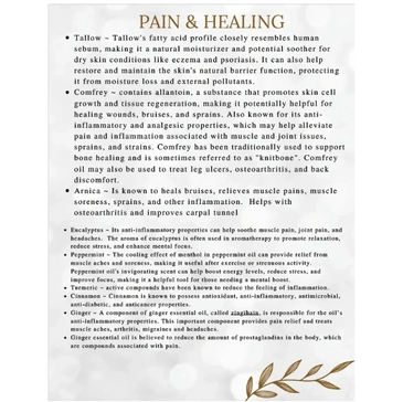 This Brazen Balm is tallow with Comfrey Oil, Arnica Oil, Eucalyptus, Peppermint, Ginger & Rosemary